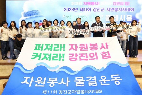 (전남=NSP통신) 김용재 기자 = ‘2023년 제11회 강진군자원봉사자대회’가 지난 5일 강진국민체육센터 제1실내체육관에서 자원봉사자 300여 명이 참여한 가운데 개최됐다.