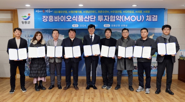 (전남=NSP통신) 김용재 기자 = 장흥군이 지난 15일 장흥바이오식품산단에 투자할 8개 기업과 326억원 규모의 투자협약을 체결했다.