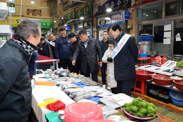 (전남=NSP통신) 김용재 기자 = 장흥군이 최근 설 명절을 맞아 ‘전통시장 장보기 행사’를 정남진장흥토요시장에서 가졌다.