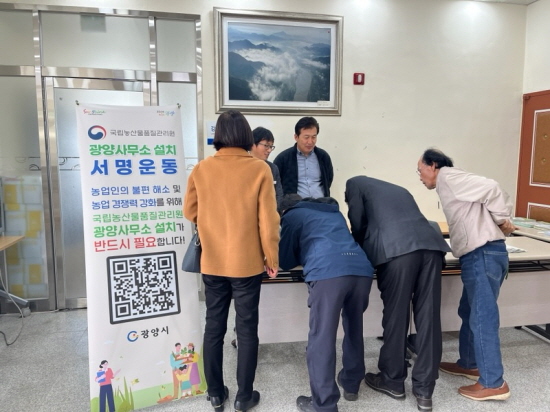 (전남=NSP통신) 김성철 기자 = 광양시가 고령의 지역 농민들의 불편을 해소하고 농업인의 안정적 소득을 지원하기 위해 국립농산물품질관리원 광양사무소 설치 ‘범시민 서명운동’에 돌입했다.