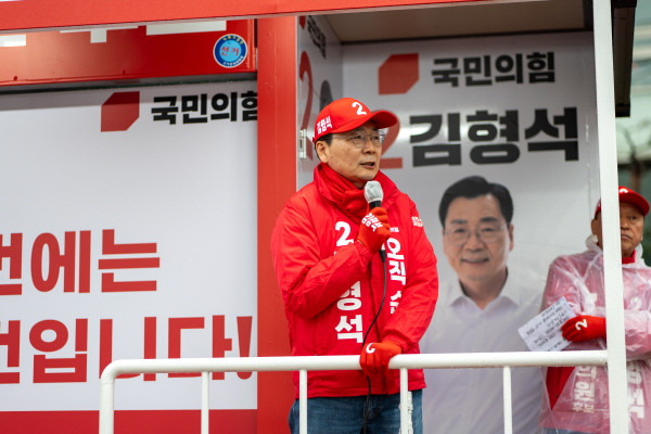 NSP통신-국민의힘 김형석 후보가 빗속 출정식을 하고 있다 (사진 = 선거캠프)