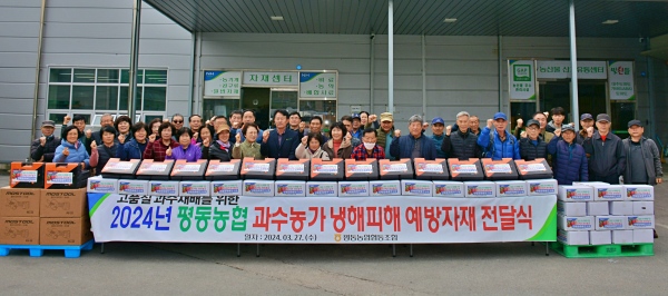 (광주=NSP통신) 김용재 기자 = 농협광주본부(본부장 이현호)는 지난 27일 평동농협(조합장 최삼규)이 자재센터 앞에서 과수농가 냉해피해 예방을 위한 자재 전달식을 가졌다고 28일 밝혔다.