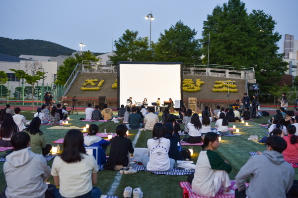 이날 대학 운동장은 돗자리를 깔고 <달빛거지들>팀의 버스킹 공연과 대형 에어 스크린으로 영화 ‘다음 소희’를 감상하며 시원한 바람 아래 캠퍼스의 정취를 느끼는 학생과 시민들로 북적였다.