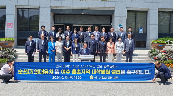 (전남=NSP통신) 서순곤 기자 = 여수시의회(의장 김영규)가 국립 순천대학교에 의과대학과 여수시 율촌면에 대학병원 설립을 촉구했다.