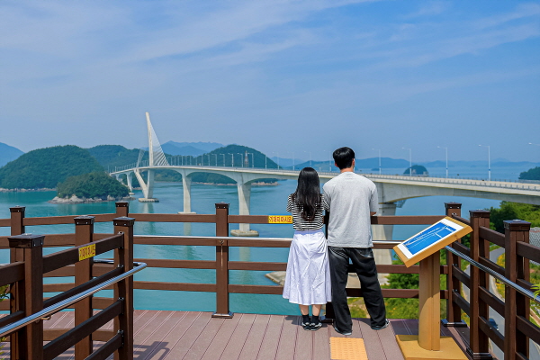 NSP통신-여수~고흥을 잇는 조발도 해오름언덕에 관광객이 쉬었다가 갈 수 있는 정자와 그늘막 등 경관쉼터를 조성했다. (사진 = 여수시)