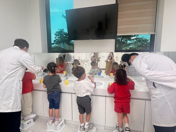 특히 양치질이 끝나면 구강검진 후 충치 예방에 좋은 불소도포를 시행하고 가정용 불소양치 용액과 어린이 양치컵 세트도 함께 제공하고 있다.