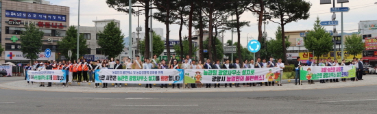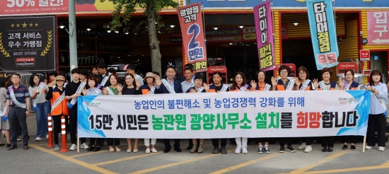 캠페인은 지역 내 8개 농업인단체와 국립농산물품질관리원 순천·광양사무소, 관내 농협, 공무원 등 150여 명이 참석한 가운데 어깨띠와 현수막으로 시민들에게 농관원 광양사무소의 필요성을 홍보하고 서명운동도 함께 진행했다.