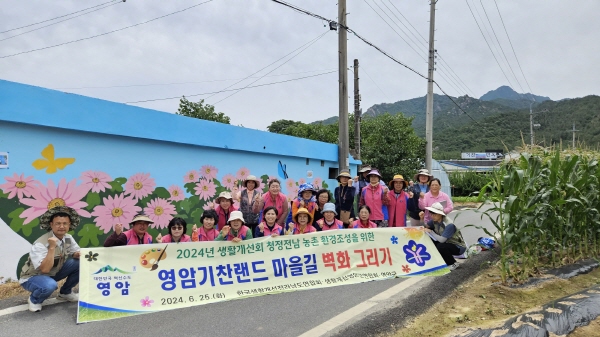 생활개선영암군연합회(회장 이경자)가 주최한 벽화 그리기 행사가, 지난 25일 월출산기찬랜드 입구 마을길에서 성료됐다.