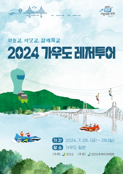 (전남=NSP통신) 김용재 기자 = 강진군이 오는 26일부터 28일까지 가우도 일원에서 개최되는 ‘2024 가우도 레저투어’ 행사를 맞아 제트보트와 짚트랙 등 파격적인 할인 이벤트를 실시한다.