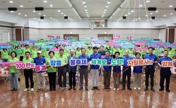 이어 물축제 100만 관광객 목표와 세계적인 축제로 도약을 염원하는 기념 퍼포먼스를 진행했다.