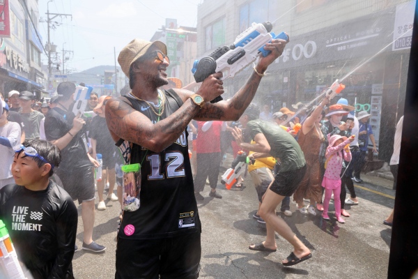 물축제의 중심 프로그램 중 하나인 지상 최대의 물싸움은 매일 오후 2시 장흥교 아래서 진행된다.