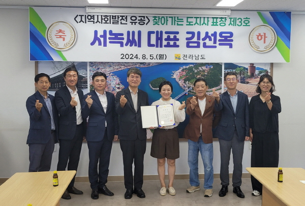 (전남=NSP통신) 서순곤 기자 = 여수시는 중앙동 소재 주식회사 서녹씨의 김선옥 대표가 찾아가는 도지사 제3호 표창을 받았다고 밝혔다.