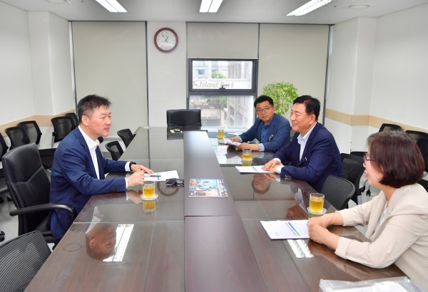 (전남=NSP통신) 김용재 기자 = 김한종 장성군수가 6일 여의도 소재 사무실에서 박범수 농림축산식품부 차관과 면담을 갖고 △수출주도형 가정식 대체식품(HMR) 선도지구 조성 △인공지능(AI) 챔버형 스마트팜 단지화 사업 △국립 아열대 자생식물원 조성 등 농업‧산림 분야 국고건의사업 6건에 대한 적극적인 협조를 요청했다.