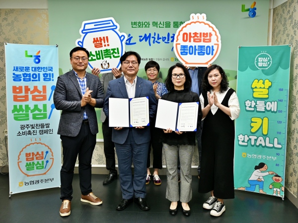(광주=NSP통신) 김용재 기자 = 농협광주본부(본부장 이현호)과 광주소비자연맹(회장 오미록)이 지난 14일 농협광주본부에서 쌀 소비 확대를 위한 방법에 대해 논의하고 ‘쌀 소비촉진을 위한 상생협력 협약식’을 가졌다.