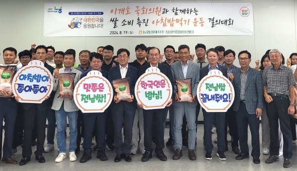 이날 행사에서는 특히 이개호 의원과 함께 전남농협이 추진하고 있는 전남 쌀 소비촉진 운동과 연계한 ‘전국민 아침밥 먹기 캠페인’을 진행해 쌀을 비롯한 전남 농축산물 소비촉진에 적극 동참키로 했다.