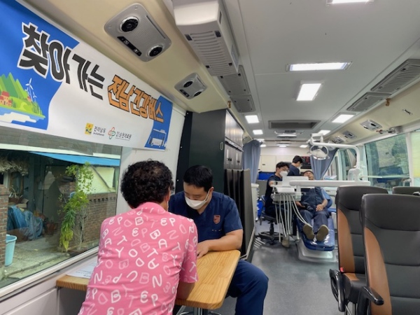 이 날 전남건강버스 혈압·혈당, 콜레스테롤, 골밀도 검사, 건강상담 등의 의과 진료와 더불어 침, 뜸, 온열치료 등 한방진료, 구강검진과 틀니 관리 요령 등의 치과 진료를 통해 주민들에게 맞춤형 보건의료 서비스를 제공했다.