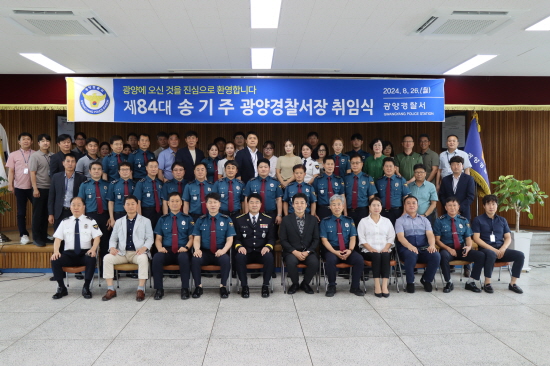 (전남=NSP통신) 김성철 기자 = 광양경찰서는 지난 26일 경찰서 4층 백운마루에서 각 과장 및 지역관서장 등 60여 명이 참석한 가운데 제 84대 송기주 총경이 취임했다.