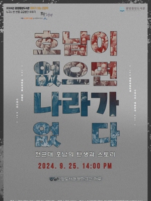 (전남=NSP통신) 김성철 기자 = 광양중앙도서관는 9월 25일 오후 2시 문화공간 ‘하루’에서 ‘호남이 없으면 나라가 없다, 전근대 호남의 탄생과 스토리’ 강연이 개최될 예정이라고 알렸다.