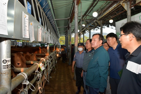 (전남=NSP통신) 김용재 기자 = 이병노 담양군수가 지난 1일 담양읍 만성리 가축시장을 방문해 한우 가격 동향 및 한우 경매 진행 상황을 살펴보고 축산농가의 애로사항을 청취했다.