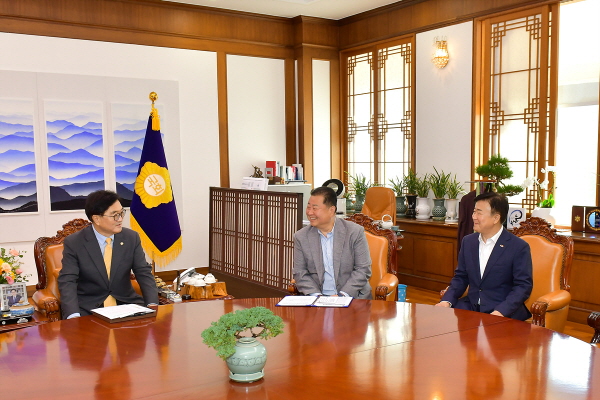 (전남=NSP통신) 서순곤 기자 = 정기명 여수시장이 우원식 국회의장을 만나 환담하고 ‘제33차 유엔기후변화협약 당사국총회(COP33) 유치’ 등 현재 추진 중인 굵직한 현안에 대한 적극적인 협조를 건의했다.