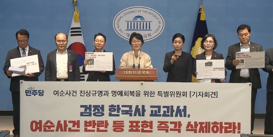 또한 “여순사건을 왜곡하고 희생자와 유족들의 명예를 훼손하는 한국사 교과서의 ‘반란’ 등의 표현을 즉각 삭제할 것을 강력히 촉구한다”며 “학생들에게 국가폭력 사건인 여순사건을 정당화하는 역사관을 주입해서는 안 된다”고 덧붙였다.