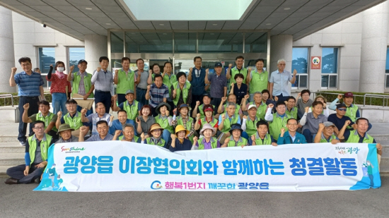 이번 추석맞이 대청결활동은 광양읍 이장협의회와 광양시청 공직자 등 200여 명이 참여했으며, 광양읍을 18개 구간으로 나눠 동 서천과 원도심 취약지역 위주로 생활 쓰레기 수거 등 환경정화 활동을 펼쳤다.