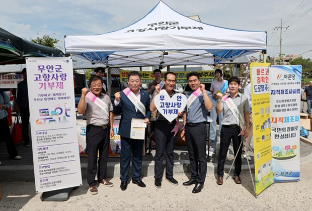 김산 군수는 “민족 대명절 추석을 맞아 고향을 방문한 향우와 귀성객 모두 웃음꽃 가득 피는 풍요로운 한가위를 보내시길 바란다”며 “앞으로도 우리 무안군 고향사랑기부제가 더욱 활성화할 수 있도록 많은 사랑과 응원을 부탁드린다”고 말했다.