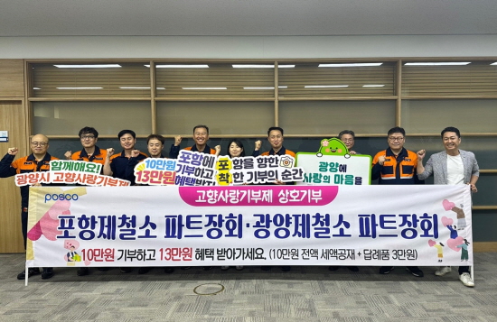 이번 행사는 지난 7월 양 제철소 재능봉사단 간 상호기부로 시작된 ‘광양-포항제철소 상생발전 고향 사랑 릴레이 상호기부’에 노경협의회에 이어 파트장협의회가 다음 주자로서 동참을 다짐하기 위해 실시됐다.