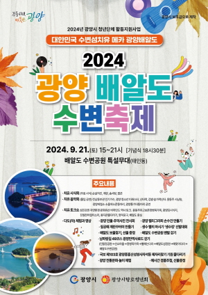 (전남=NSP통신) 김성철 기자 = 2024년 광양 배알도 수변축제가 9월 21일 오후 3시~9시까지 광양시 태인동 배알도 수변공원 일원에서 개최된다.