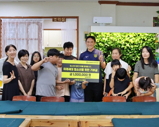 (전남=NSP통신) 김성철 기자 = 전남드래곤즈(이하 전남) 미드필더 이후권이 지난 12일 백운산지역아동센터에 찾아가 100만 원을 기부하며 어린이들을 응원했다.