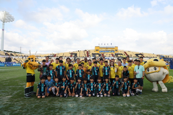 특히 구례북초등학교 축구팀 어린이 22명이 플레이어 에스코트로 참여해 프로선수들과 함께 입장하는 뜻깊은 경험을 갖기도 했다.