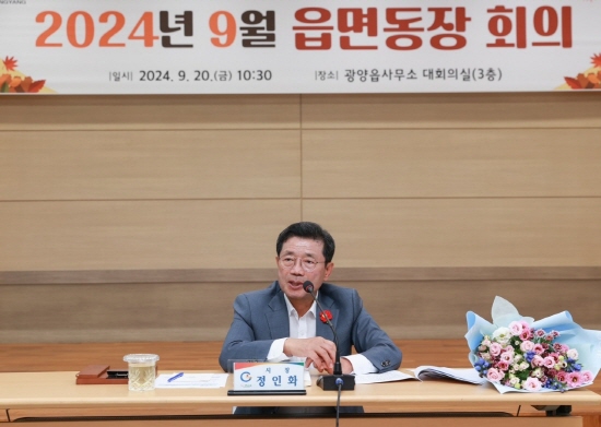 (전남=NSP통신) 김성철 기자 = 광양시는 지난 20일 광양읍사무소 대회의실에서 본청과 읍·면·동 간 시정 현안을 공유하는 읍·면·동장 회의를 개최했다고 밝혔다.