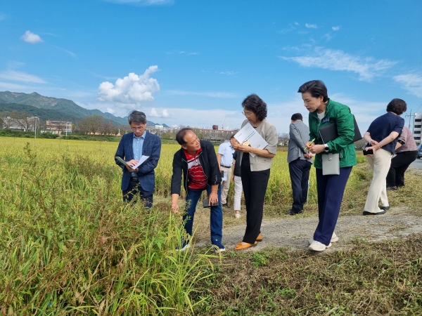 (전남=NSP통신) 김용재 기자 = 곡성군이 지난 26일 전남도농업기술원과 함께 가루쌀 재배단지 등 농업현장을 방문했다.