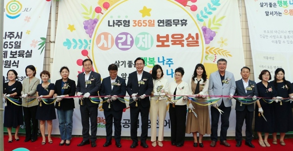 나주시(시장 윤병태) 지난달 30일 송월동 궁전어린이집에서 ‘365일 시간제 보육실 개원식을 개최했다.