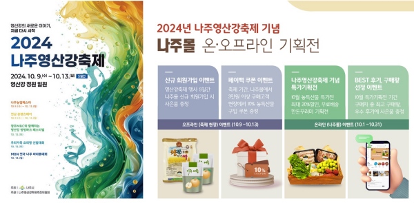 (전남=NSP통신) 김용재 기자 = 나주시 농특산물 온라인 쇼핑몰인 ‘나주몰’이 2024 나주영산강축제를 기념해 10월 한 달간 알찬 소비자 이벤트를 진행한다.