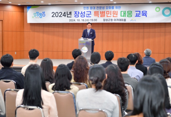 (전남=NSP통신) 김용재 기자 = 장성군이 16일 군청 아카데미홀에서 민원 담당 공무원 130여 명을 대상으로 특별민원 대응교육을 열었다.