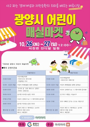 행사장에는 사용하던 물품을 사고파는 벼룩시장뿐만 아니라 직업 체험, 경제 인형극, 퀴즈쇼, 솜사탕 퍼포먼스 등의 프로그램들이 준비돼있다. 아울러 광양시 ‘어린이 놀이문화 프로그램’ 사업과 연계한 프로그램들과 버룩시장 수익금 일부를 자율적으로 기부할 수 있는 모금함이 함께 운영될 예정이어서 어린이들의 참여율이 높을 것으로 전망된다.