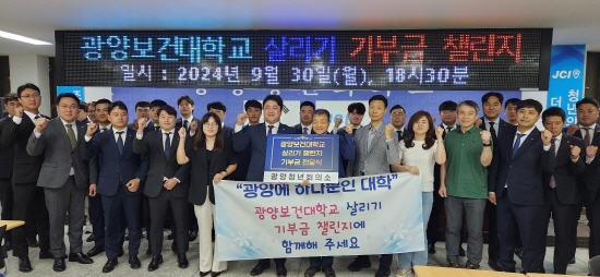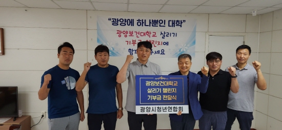 (전남=NSP통신) 김성철 기자 = 광양보건대학교 살리기 시민운동본부(이하 시민본부)는 광양보건대학의 재정건전성에 기여하기 위해 광양보건대학교 살리기 챌린지를 전개했다. 지난 8월 3일 광양희망 로타리클럽의 챌린지 1호를 시작으로 광양시민의 호응에 힘입어 챌린지 5호까지 순조롭게 진행되고 있다.