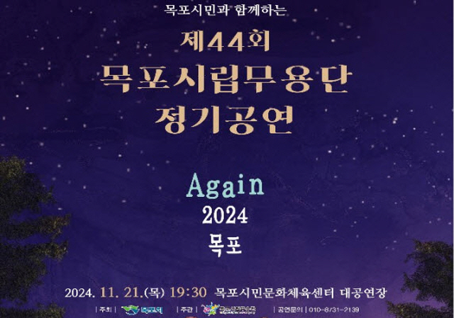 (전남=NSP통신) 윤시현 기자 = 목포시립무용단(상임안무자 배강원)이 제44회 정기공연 ‘Again 2024 목포(어게인 2024 목포)’를 개최한다.