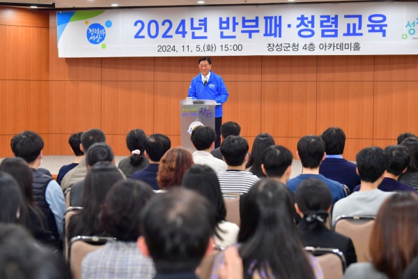 (전남=NSP통신) 김용재 기자 = 장성군이 지난 5일 군청 아카데미홀에서 공직자 대상 ‘반부패‧청렴교육’을 실시했다. 강의는 김세국 전남도 감사관이 맡았다.