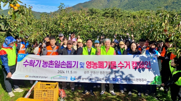 이번 일손돕기에는 광주농협(조합장 김순택), 광산구시설관리공단(이사장 임영일), 북구시설관리공단(이사장 나기백), 광주관광공사(사장 김진강) 임직원 50여 명이 참여했으며, 단감 수확 및 선별작업, 마을 주변 영농폐기물을 수거하는 등 부족한 농촌 일손에 힘을 보탰다.