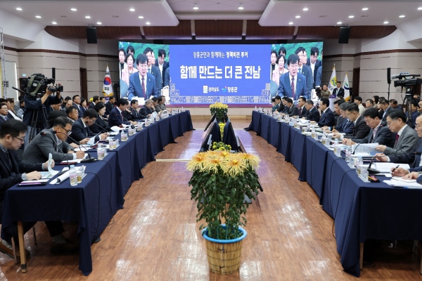 김성 장흥군수는 환영사에서 지역 역사상 최대 규모인 155건에 4815억 원의 국공립 기관 유치와 국도비 확보 성과를 밝히며, 이를 지원한 전남도에 감사의 뜻을 전했다.