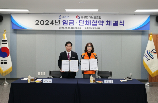 (전남=NSP통신) 남정민 기자 = 전남 고흥군(군수 공영민)은 최근 공무직 노조인 공공연대노동조합과 2024년 임금·단체협약을 체결했다고 19일 밝혔다.