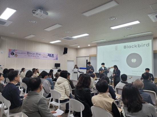 ‘해설이 있는 음악회’는 수준 높은 라이브 공연에 곡에 대한 해설을 결합한 강의형 콘서트로 광양금호도서관만의 특색있는 프로그램이다. ‘팝한 재즈’를 주제로 열린 이번 공연을 관람하기 위해 광양시민 80여 명이 공연장을 찾았다.