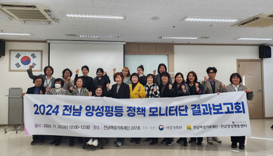 이번 결과보고회는 2024 전남 양성평등 정책 도민 모니터단의 활동 성과를 바탕으로 마련됐다. 전남양성평등센터는 국민이 체감할 수 있는 성평등 정책 실행을 지원하기 위해 양성평등 정책 도민 모니터단 사업을 운영하고 있으며, 2024년에는 4월 공개모집을 통해 구성된 3개 팀(총 14명)이 활동했다.