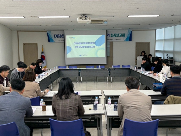 이 날 최종보고회는 전남국제직업고 운영 방향을 정립하고, 교육공동체 현장의 의견을 수렴하기 위해 마련됐으며 해외 우수 인재 유치 추진위원회 TF위원, 배치교 관리자 및 업무 담당자 등이 참여했다.