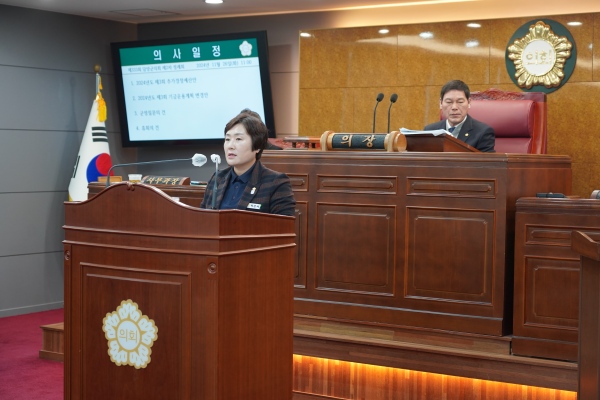 먼저 발언대에 오른 박은서 부의장은 ▲인구 감소와 지역소멸에 대응하기 위한 ‘청년 전담부서 신설’의 필요성 ▲거동이 불편한 어르신들을 위해 제공하는 병원 동행 서비스 사업 대상자를 다문화가정, 임산부 등 사회적 약자에 대해 확대하는 방안 등 2건에 대한 집행부의 의견을 물었다.