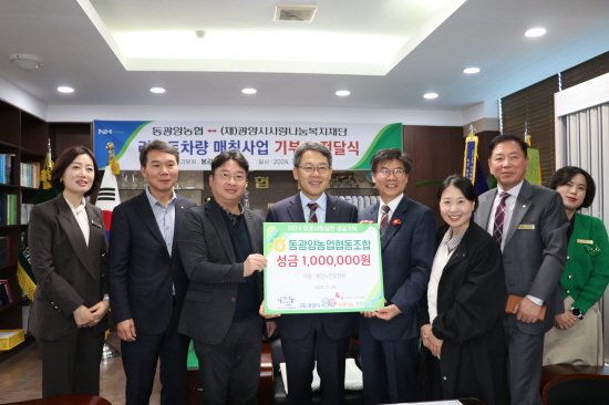 (전남=NSP통신) 김성철 기자 = 동광양농협(조합장 이돈성)은 지난 26일 농협 조합장실에서 지역사회를 위한 나눔 실천의 일환으로 광양시사랑나눔복지재단(이사장 김재경)에 성금 100만 원을 전달했다.