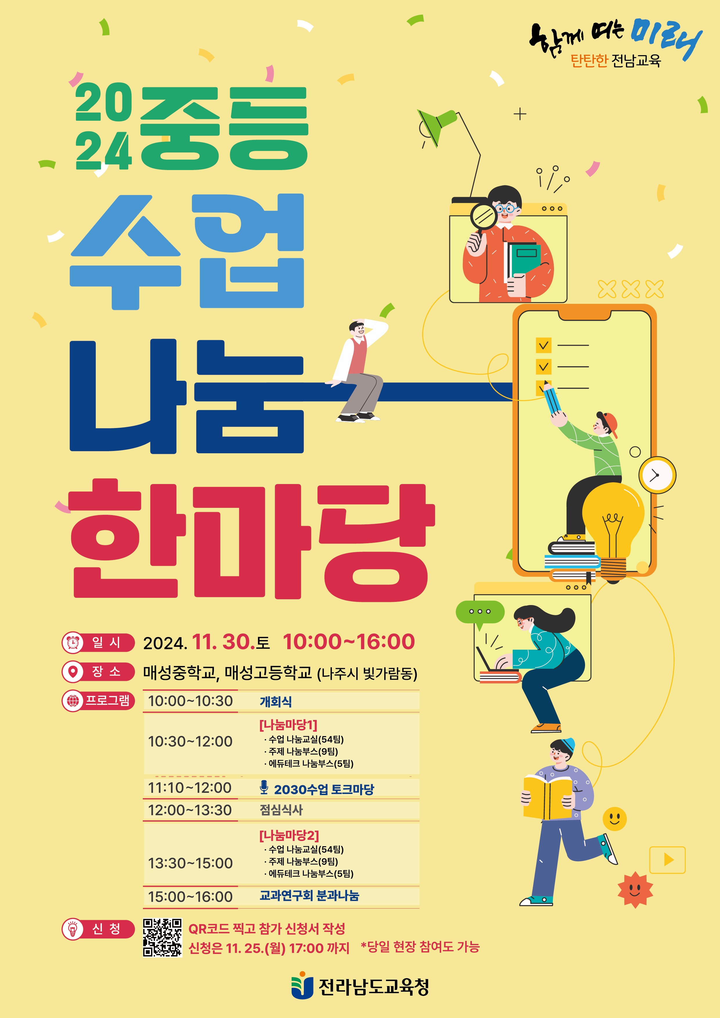 (전남=NSP통신) 김용재 기자 = 전남도교육청(교육감 김대중)이 오는 30일 매성중·고에서 도내 교원 및 교육전문직원이 참석한 가운데 ‘2024 중등 수업나눔 한마당’을 개최한다.