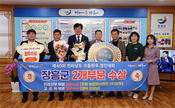 (전남=NSP통신) 김용재 기자 = 장흥군이 최근 나주축협에서 열린 ‘제40회 전라남도 으뜸한우 경진대회 시상식’에서 미경산우 부문과 고급육 부문에서 최우수상을 수상했다.